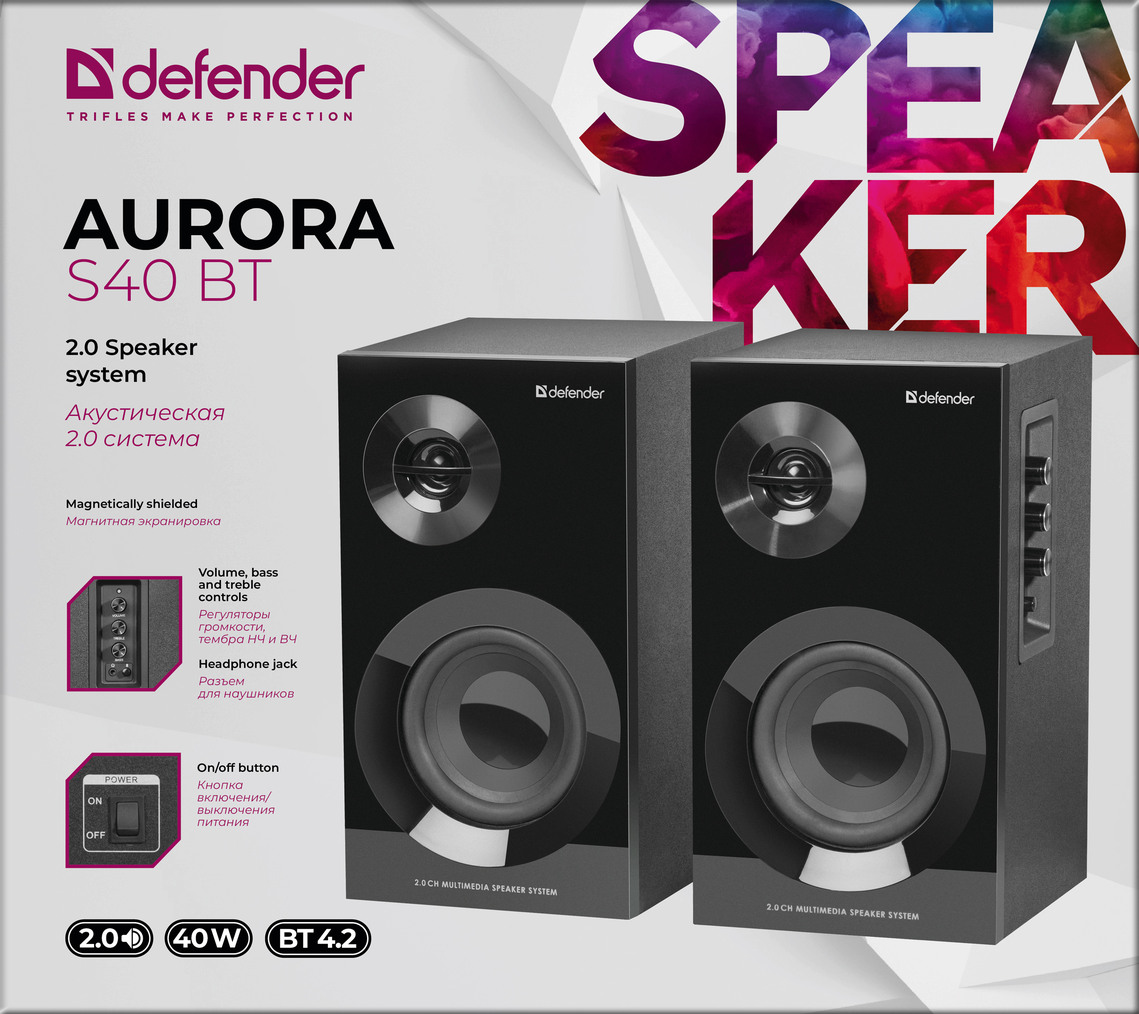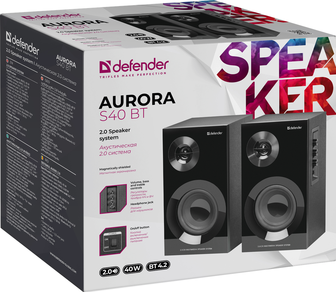 Колонки проводные 2.0 Defender Aurora S40 BT 40Вт, bluetooth, 220В