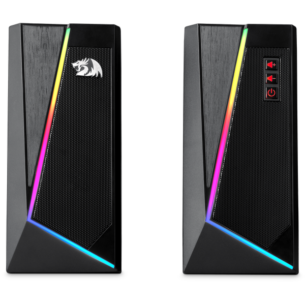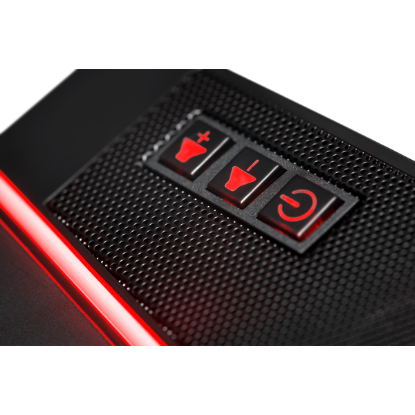 Стильная акустическая система с безупречным звуком переливающейся светодиодной подсветкой. На верхней панели сателлита присутствует сенсорная поверхность для включения\отключения подсветки. На фронтальной панели кнопки для регуляровки громкости и включения\отключения питания.