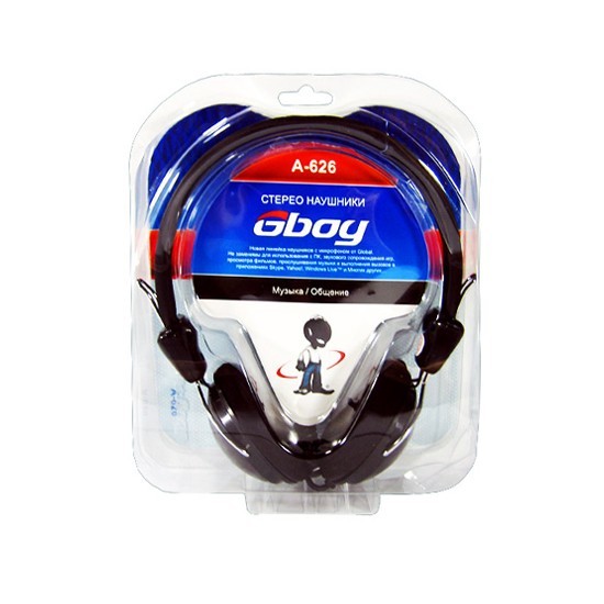 Наушники проводные Global A-626, Микрофон, Чёрный, Тип крепления: Дуговые
