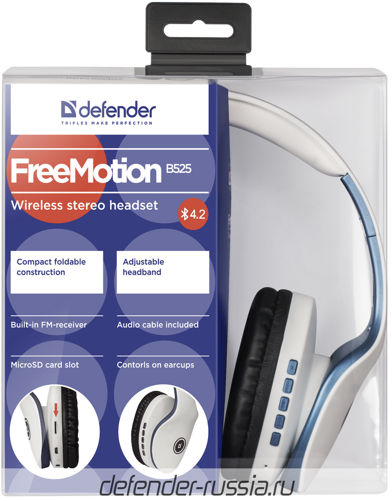 Наушники беспроводные Defender FreeMotion B525 белый-синий, BT
