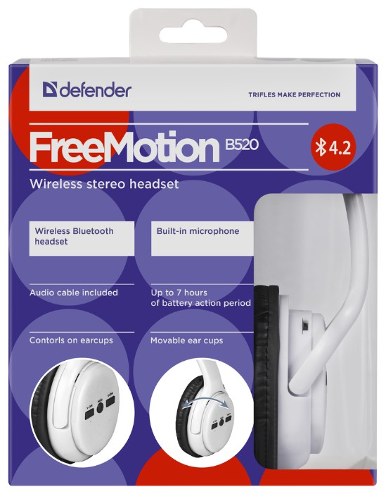 Наушники беспроводные Defender FreeMotion B520 серый, BT