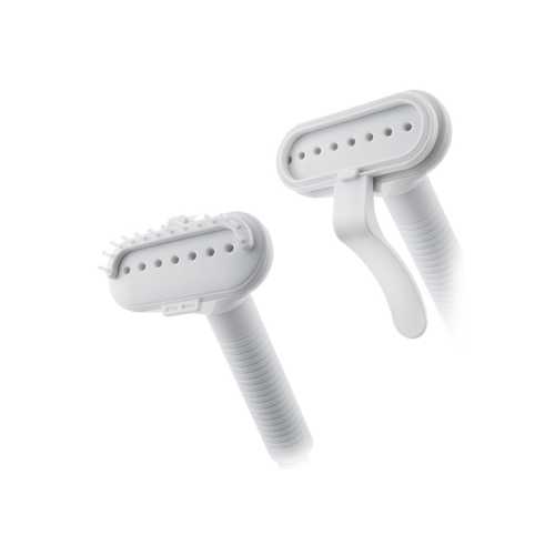 У отпаривателя в комплекте идут 2 насадки. Ворсовая щётка прекрасно справится с очисткой ткани, мягкой мебели от мусора, шерсти домашнего животного, волос. Зажим для отпаривания брюк позволит без труда прогладить стрелки или разгладить глубокие складки.