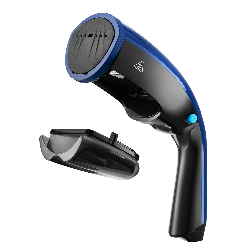 -Ручка отпаривателя складывается для более удобного и компактного хранения - в таком положении устройство занимает меньше места. На отпаривателе расположена кнопка складывания ручки, позволяющая сдвинуть ручку к резервуару для воды.