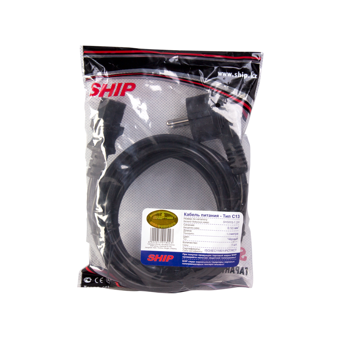 Кабель питания, SHIP, SH5005-1.2P, Тип: С13, for Case, Жилы из чистой меди толщиной 0.50 мм, пол.Пакет 1.2 м.
