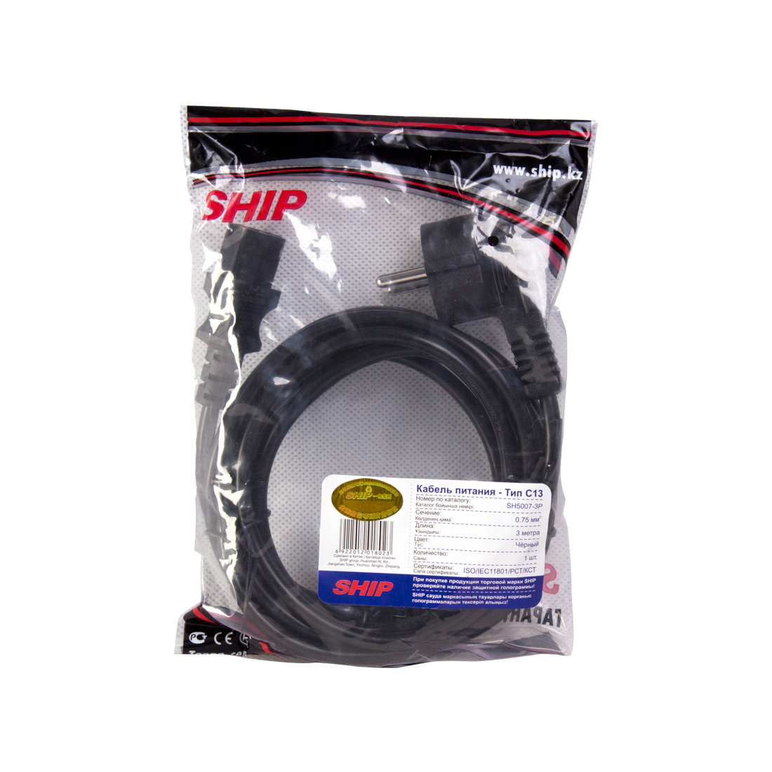 Кабель питания С13 SHIP SH5007-3P Тип: С13, for Case, Жилы из чистой меди толщиной 0.75 мм, пол.Пакет 3 м.