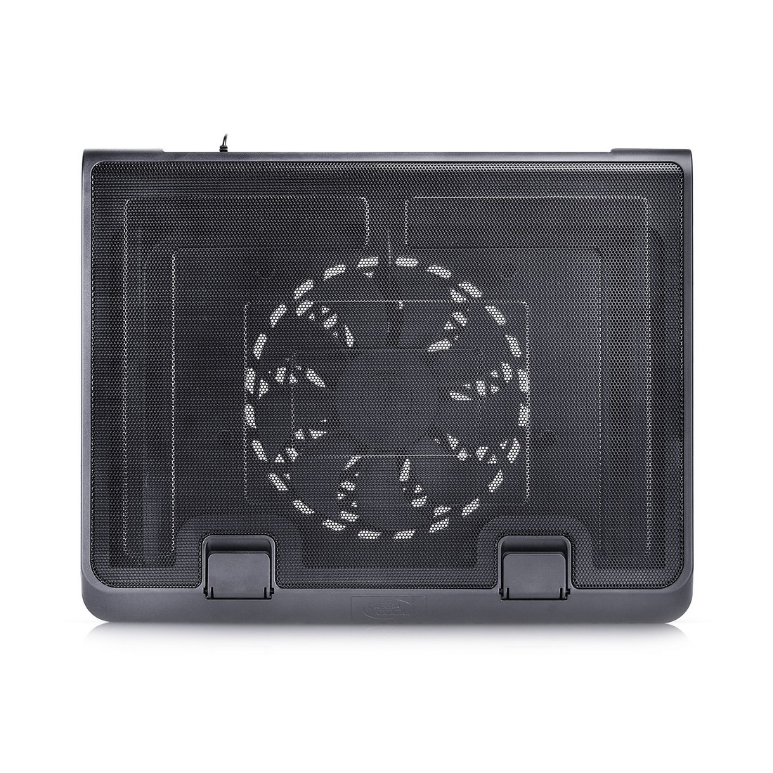 Охлаждение для ноутбука Deepcool N180 FS представляет собой большую плоскую поверхность из металлической сетки, заключенной в пластиковый корпус. Последний устойчив подобно фундаментальному монолиту. Особая форма гарантирует сбалансированность при работе в условиях нестабильности основной поверхности, например, в поезде. Пластиковые части изготовлены из экологически безопасных материалов. Большой вентилятор диаметром 180 мм со скоростью вращения 1150 об/мин. Угол наклона охлаждения Deepcool N180 FS можно отрегулировать для наибольшей эргономичности. Доступны два положения, в обоих случаях получается максимально эффективное распределение воздушных потоков. При этом ножки подставки легко поднимаются и автоматически фиксируются. Сквозной коннектор USB для простого подключения USB-устройств. Вес устройства 922 гр.