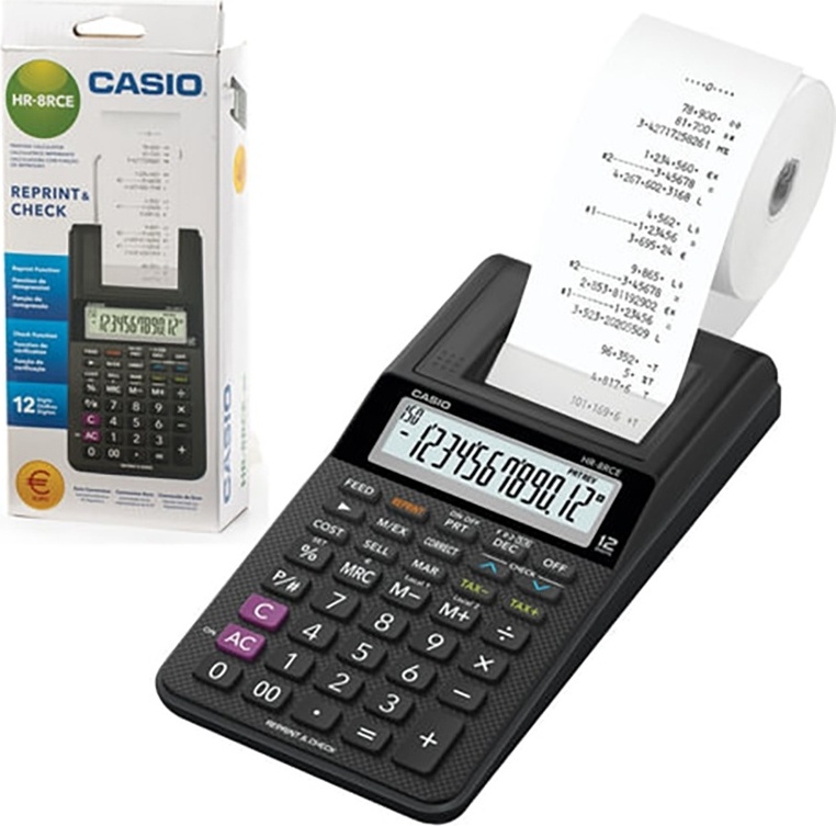 Калькулятор CASIO HR-8RCE-BK-W-EC печатающий