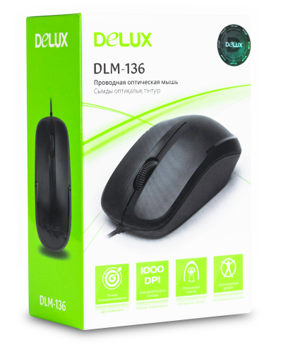 Мышь проводная Delux DLM-136OUB, USB, 1000dpi