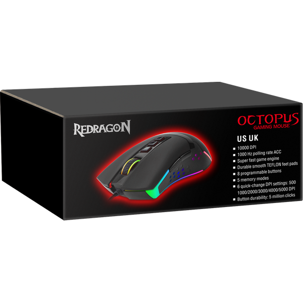 Мышь проводная Redragon Octopus (черный) USB, 9 кнопок, 10000 dpi