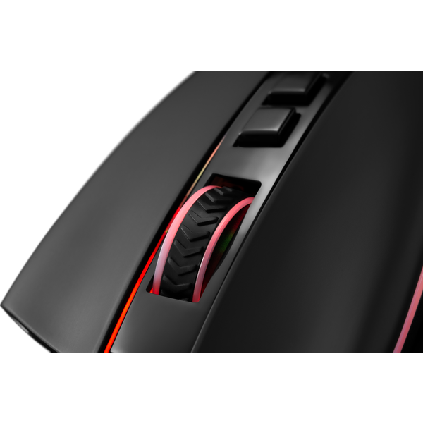 -Увеличенная ширина и специальный рисунок протектора облегчают управление мышью. Расположение колеса оптимально для мгновенного переноса указательного пальца на колесо во время игры