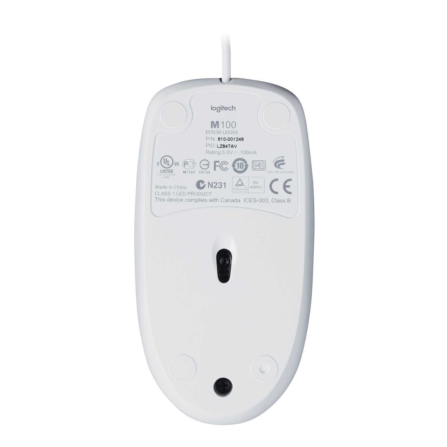 Мышь проводная Logitech M100 White 910-005004