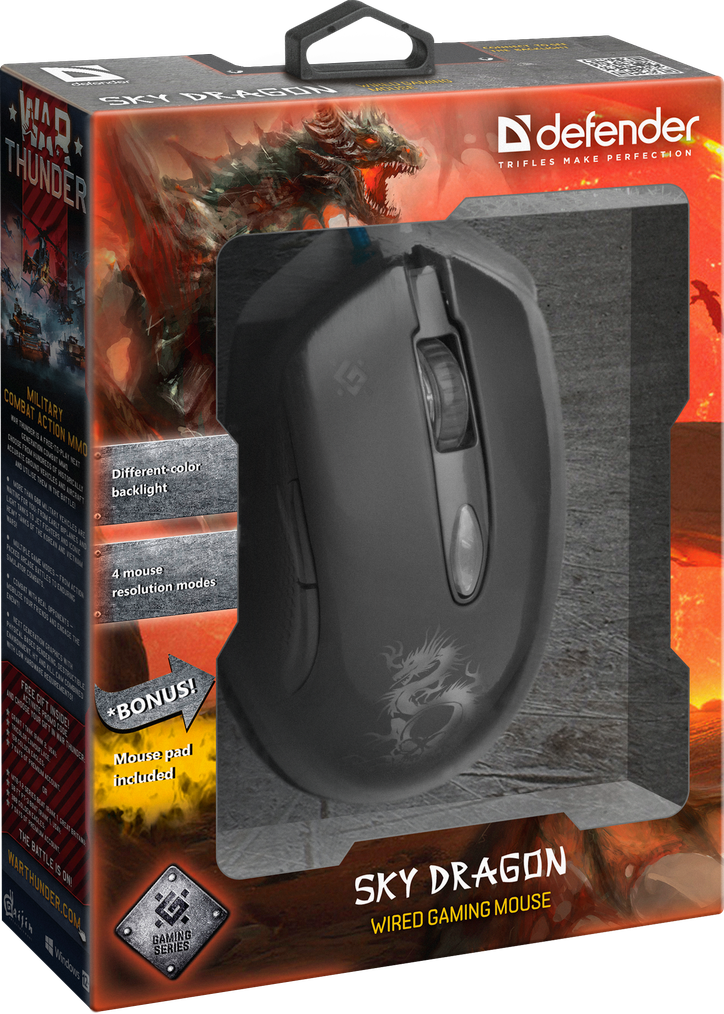Мышь проводная Defender Sky Dragon GM-090L, 6 кнопок, 800-3200 dpi, + коврик в комплекте