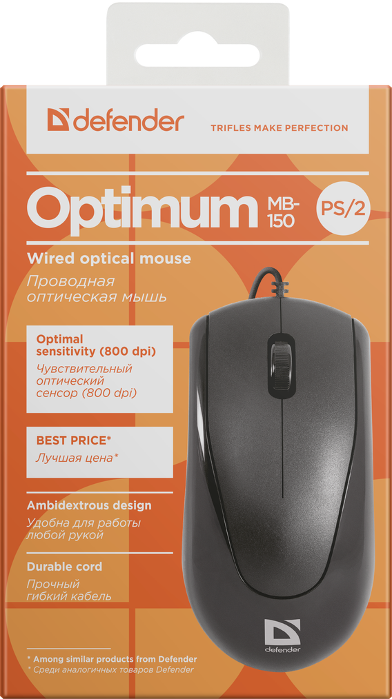 Мышь проводная Defender Optimum MB-150 PS/2 черный