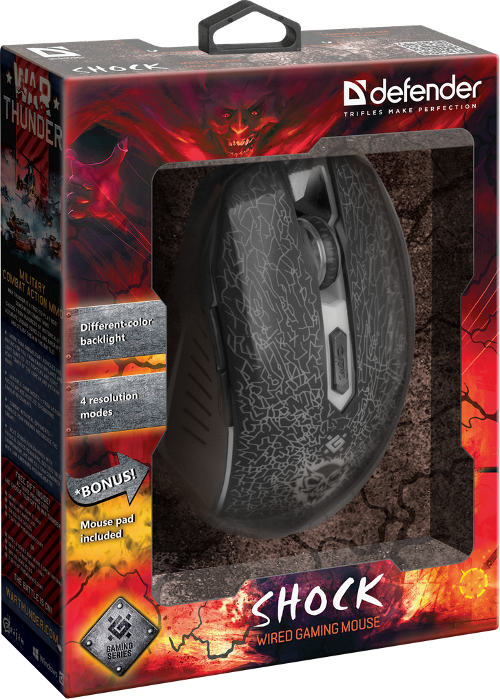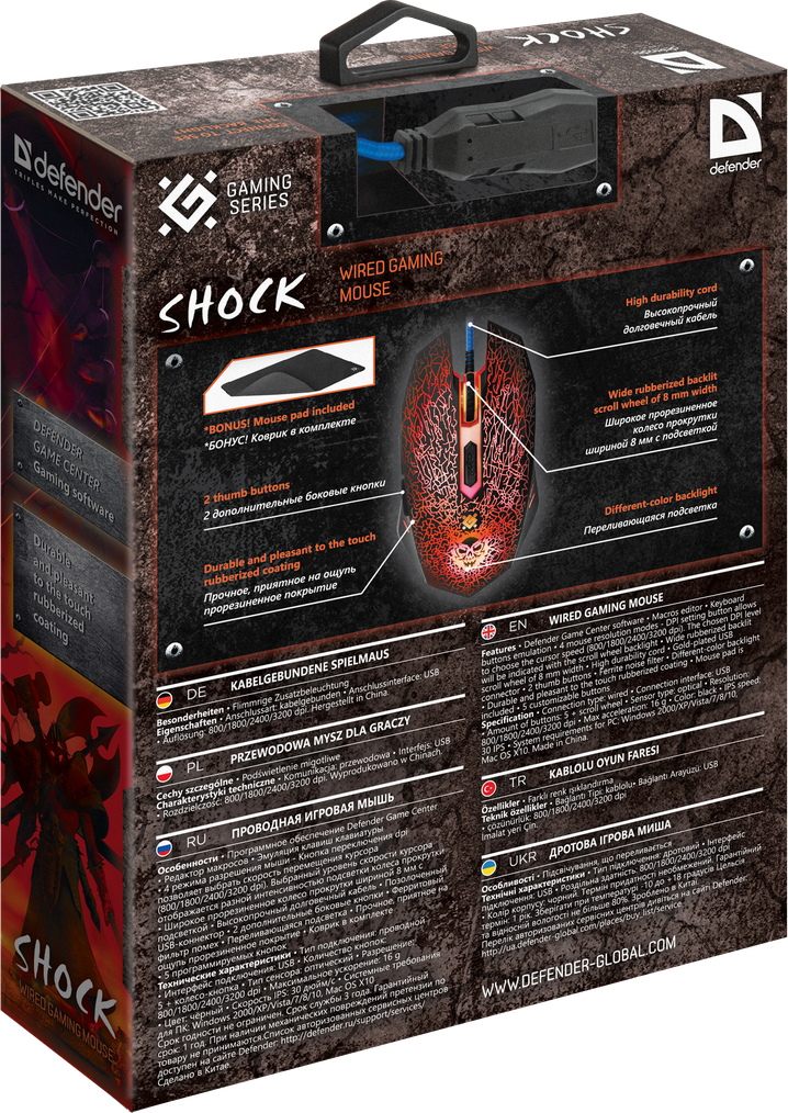 Мышь проводная Defender Shock GM-110L оптика,6кнопок,800-3200dpi + коврик в комплекте