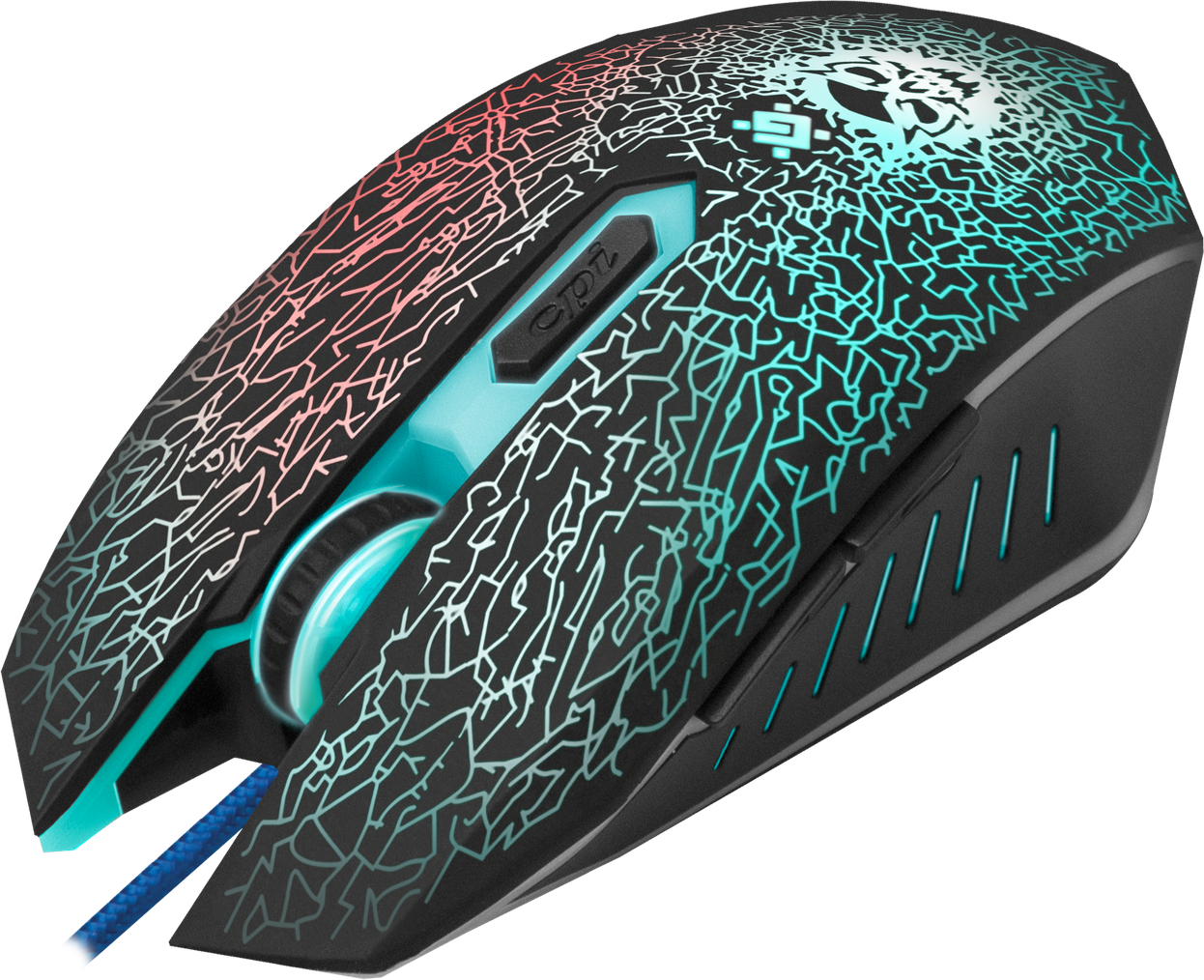Кнопка переключения dpi позволяет выбрать скорость перемещения курсора (800/1800/2400/3200 dpi). Выбранный уровень скорости курсора отображается разной интенсивностью подсветки колеса прокрутки.